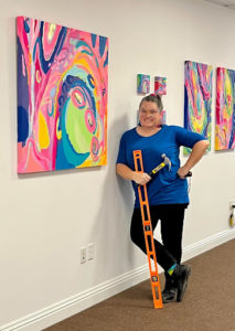 “My overarching goal is to create this family of artists who come together, connect and show up for each other. For somebody in the visual arts, it can be days on end of not leaving your studio, or your creative space, with the fear of putting it in front of someone.” Said Eastridge. “You are very vulnerable. I feel like this is an opportunity and a responsibility that I take on personally to help be that bridge. Encourage somebody to come over. Let’s show the community the amazing work that you’re doing.”