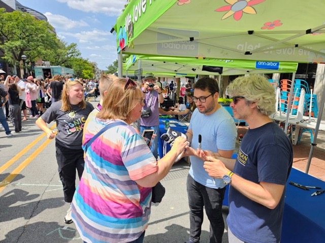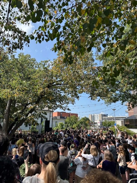 Attendee Lad Streyer said, “I had never heard of the band. I haven’t missed a Sonic Lunch in about three years. I am not used to coming here and seeing this kind of reaction for the opening act. Typically, when I walk up 15 minutes before everything starts, people are wandering in and everything. But today, it is just jam packed all the way to Liberty Street. So, I went to one of the people from the Bank of Ann Arbor to ask what was going on and he told me that there were people here from all over the country … for this show,”