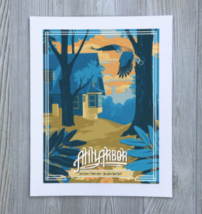 In 2015, that first illustration Walline created five years prior had a starring role in the popular romantic comedy “Sleeping with Other People,” starring Jason Sudeikis and Alison Brie. The print featured the Student Union at The University of Michigan Ann Arbor.