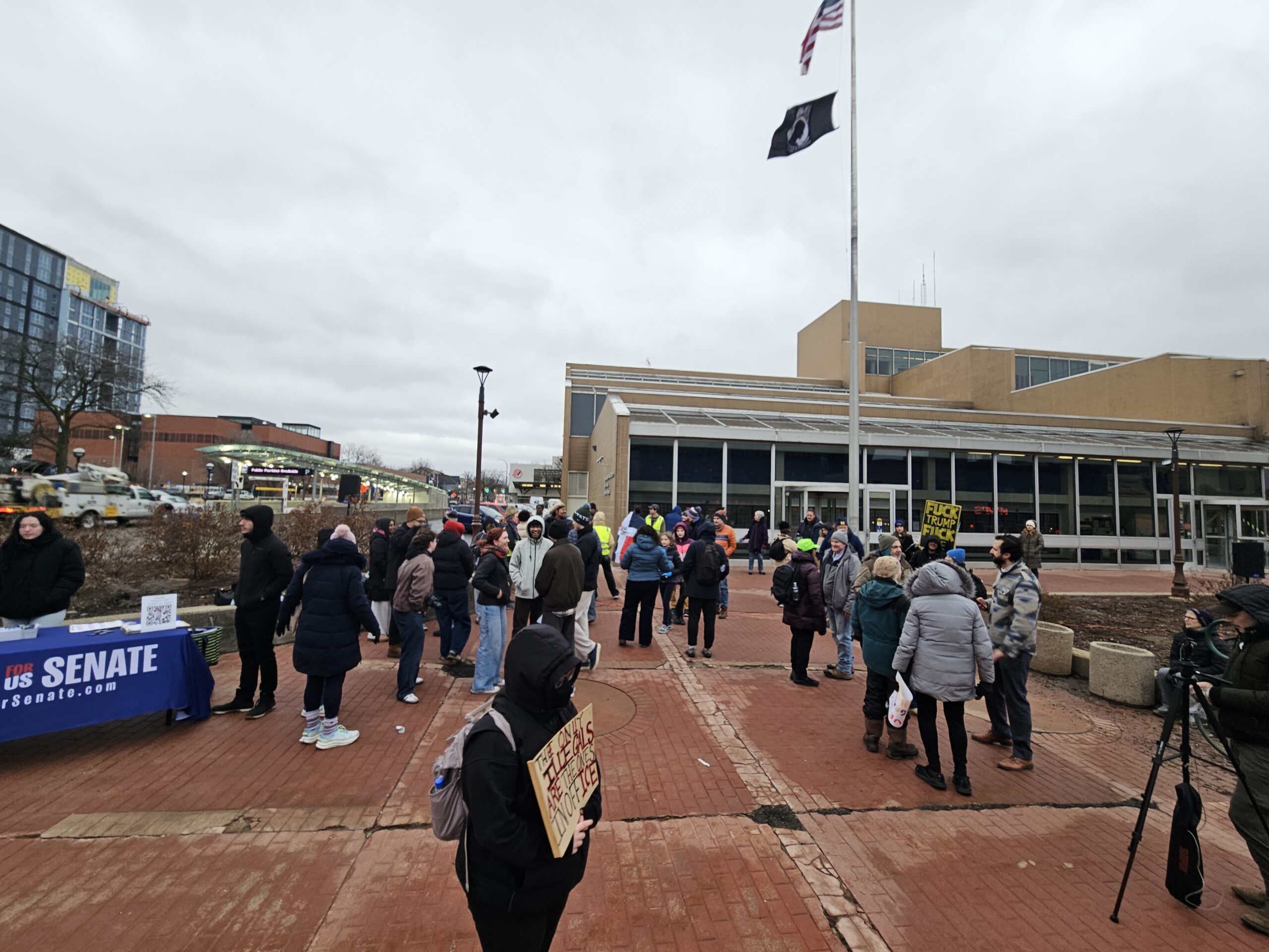 Ann Arbor Against Ice held their first formal protest rally in front of the Federal Building as the sun was setting on February 20.