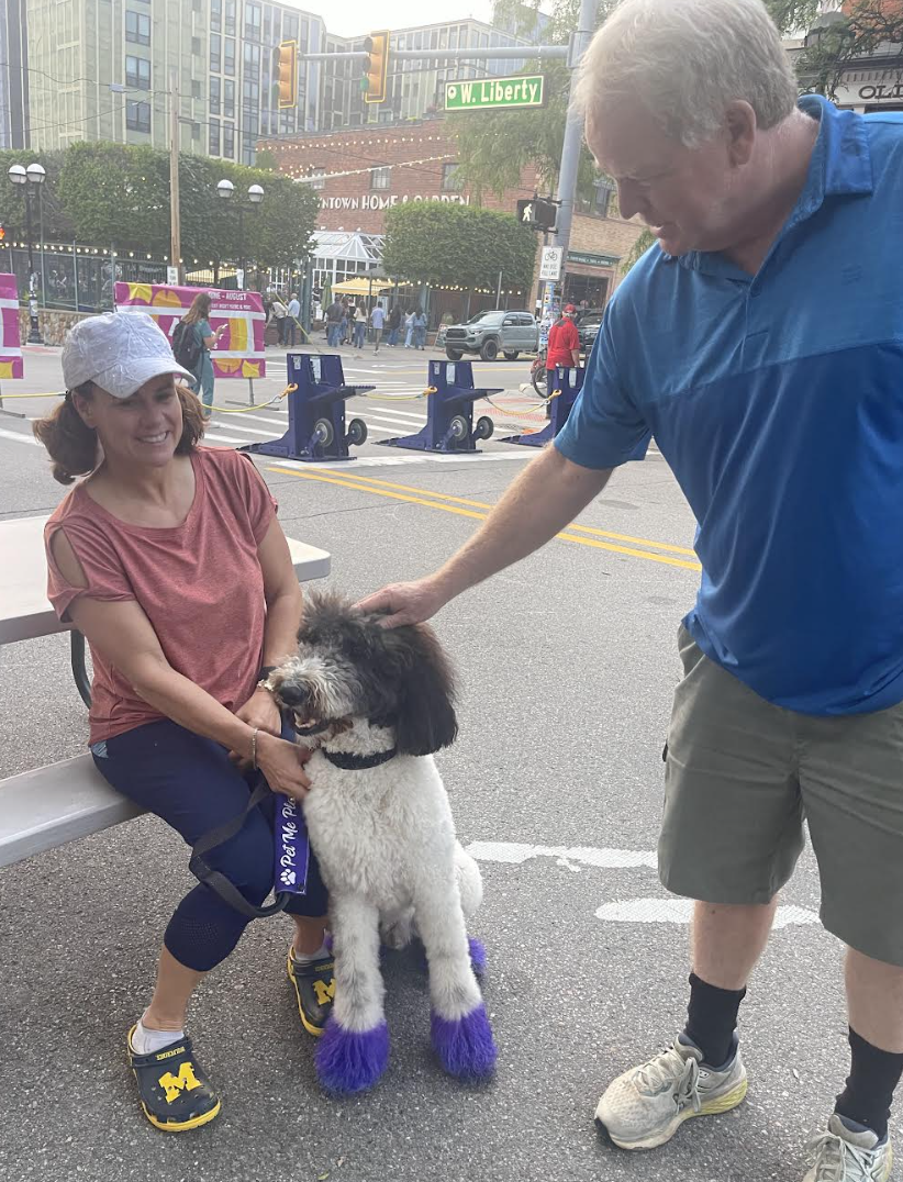 The Chisholms also bring Merlin into downtown Ann Arbor, frequenting patios and dog-friendly events like the Art Fair.