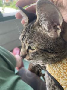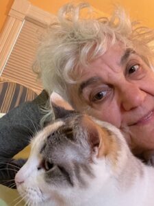 Emotional support: My current companion is Sheba, a Siamese/Calico rescue cat. She came to live with me 4 years ago this past summer, and she is now around 5 years old. The “last cats”, Sheba’s predecessors, were non-pedigreed Siamese. Penny lived to 15, Panther to 16, and Pearl to 21!! They were a family, part of my family (husband and 2 sons included). When Pearl passed on (oh, he was a real honey), I thought that was it for me. However, the COVID pandemic had me seek out feline comfort and companionship! Sheba and I found each other through Michigan Siamese Rescue. We continue to develop our relationship! She is very affectionate on her own terms! She will sit on my lap, lie on my chest, and sleep right next to me. She does not like to be picked up or carried. I’d always trimmed my cats’ nails but…. not Sheba’s!