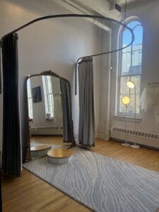 Located on the third floor of a Main Street building, The Love Club Bridal is a modern bridal atelier with historic bones. Run by two sisters, the boutique preserves the building’s original character while adding minimalist details that give the space the feel of a downtown studio rather than a traditional bridal salon.
