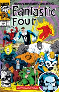 A cover image of 1991’s “Fantastic Four” No. 349 by Walter Simonson, Arthur Adams and Al Milgrom. The Fantastic F our team up with the new Fantastic Four: Spider-Man, Wolverine, the Hulk, and Ghost Rider. Image courtesy of Marvel Comics.