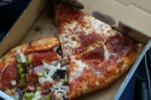 “Everything is fresh. We make our dough, shred our cheese daily so it does not have preservatives, cut all the veggies, and make everything fresh in-house,” Comstock said. “We are known for our breakfast pizza. It is different in Adrian, because that location is a convenience store that opens at seven. But the breakfast pizza is why we open at nine, and people enjoy it. That’s one of our unique items.”