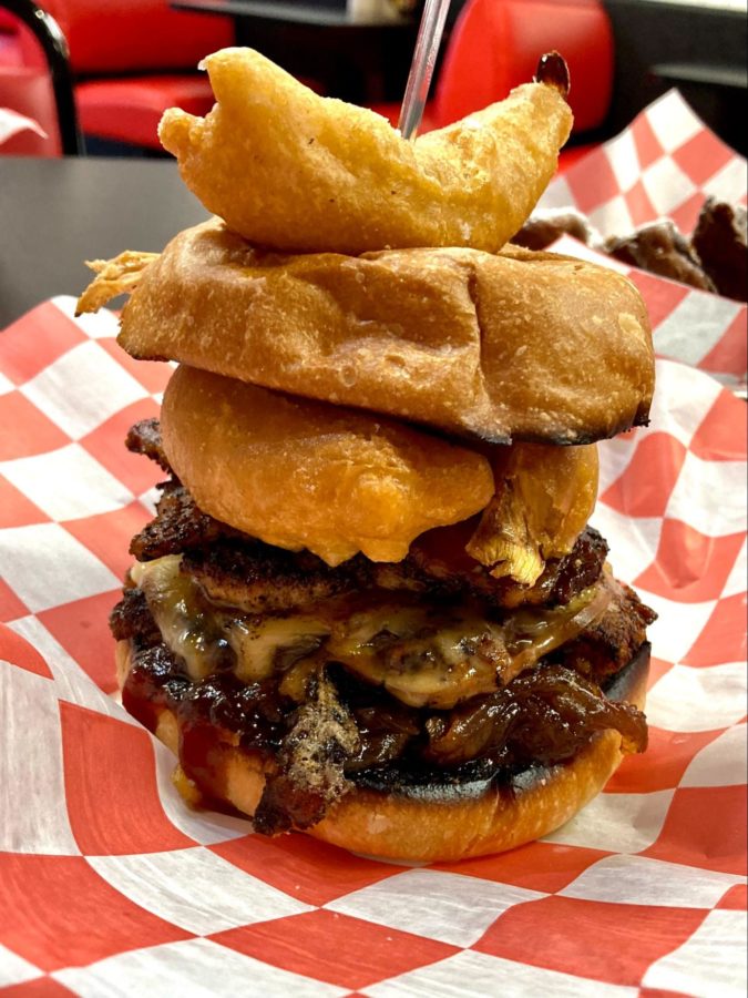 Smasher’s are Ma Lou’s version of a smashburger, with two chicken patties in between burger buns. The cashier’s favorite smasher is the Smoke House, so I ordered it and dug in next. It was topped with bacon, smoked gouda, onion petals, a sweet and smoky onion marmalade, and bbq sauce with an onion roll secured on top by a pick.
