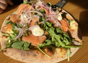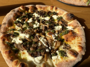 We’ve enjoyed PizzaPazza on two different occasions—once as takeout and once dining in—and the experience held up beautifully both ways. Our selections included the Margherita, prosciutto and arugula, mushroom, and a salmon pie with added sausage. Each was stellar, generously topped without being overworked, and thoughtfully balanced. The portions are more than satisfying—easily enough for two people, or for leftovers that make a second meal something to look forward to. The salads deserve equal praise. Both the arugula and chopped salads proved ideal companions to the pizzas: fresh, well-composed, and far from an afterthought.