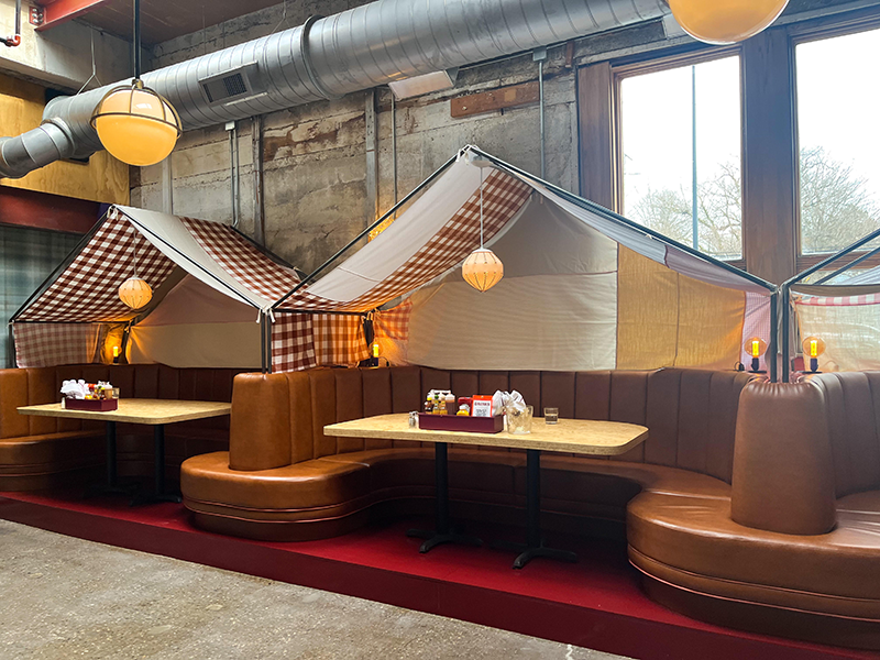 At Union Rec, gingham tents drape over large booths and a perfect combination of mismatched hues and patterns makes it feel like the summer camp getaway in the middle of the city.