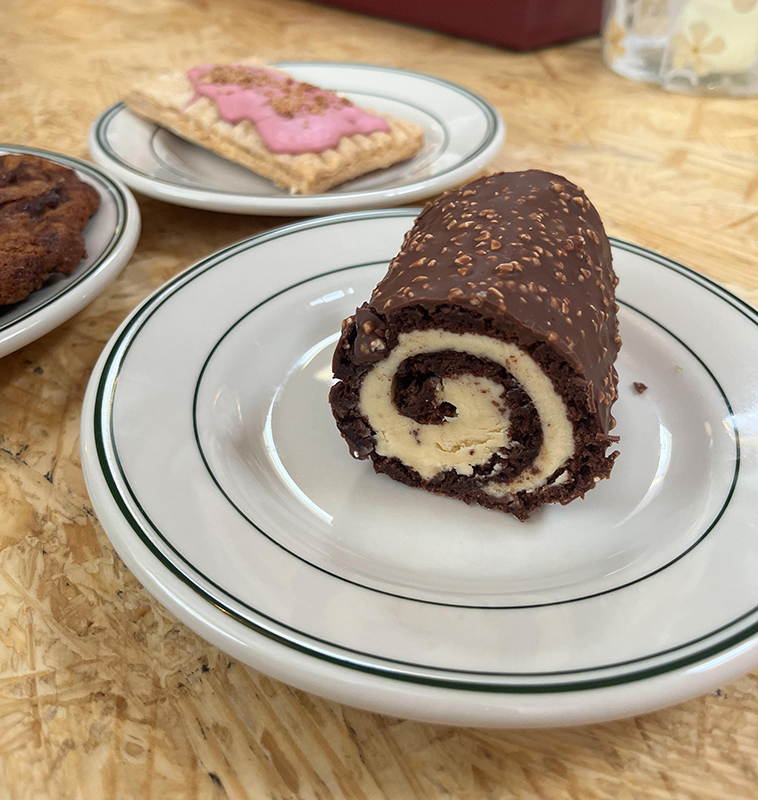 It is also worth trying some of their specialty pastries. The crunchy tastee cake consists of moist layers of chocolate cake rolled with sweet and light cream and topped with crunchy coating. A variation of this tastee cake is also on the main dessert menu at the restaurant.