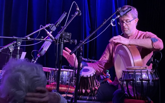 The Dave Sharp Worlds Quartet includes Sharp on Bass, guimbri, quatar and synthesizer, Igor Houwat on oud, Henrik Karapetyan on violin and Mike List-Cajon on riq, tabla and baya, djembe, cymbals, pot drum, frame drum and darbouka.