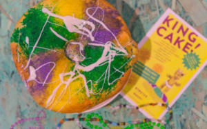 According to neworleans.com, “The name king cake comes from the Biblical story of the three kings who bring gifts to Baby Jesus. A blend of coffee cake and cinnamon roll, king cake is usually iced in yellow, green and purple – the colors of Mardi Gras, and is frequently packed with fruit fillings and decadent cream cheeses. Hidden within these season sweets also lie a special surprise: a plastic king cake baby to continue the fun…Whoever finds it (the baby) must either bring the next cake or throw a party, thus sparking an unending round of food and fun.”